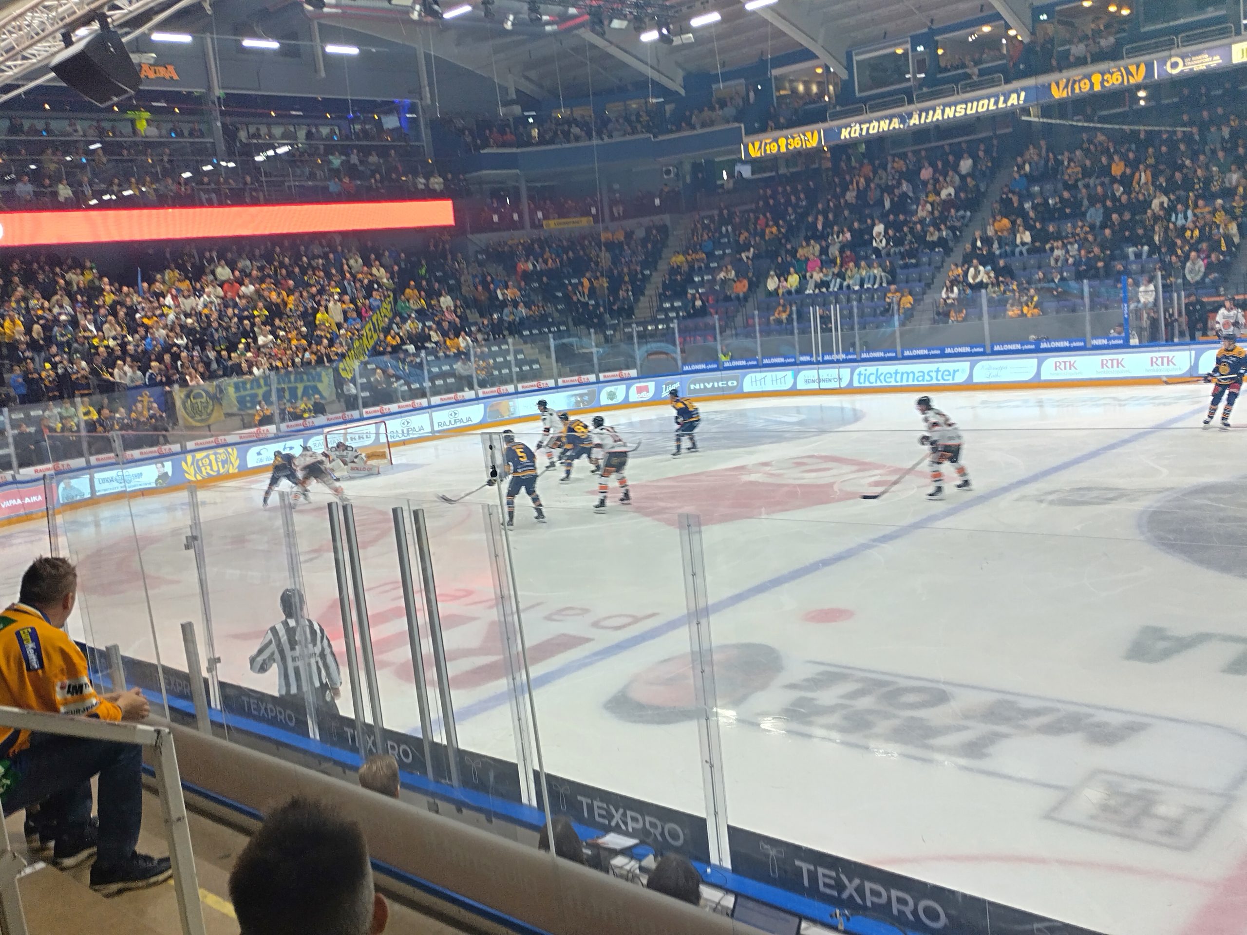 Jami Krannila tuplasi raumalaisten johdon ylivoimalla, kun erää oli pelattu kolme ja puoli minuuttia. Maali syntyi todelliseen vanhaan punakonetyyliin, sillä kiekko liikkui jokaisen viiden pelaajan kautta maalintekijä Krannilalle maalin kulmalle. Krannilan osuman jälkeen Lukko osui erässä vielä kolmesti, kun maalin mieheen iskivät Topias Haapanen, Alex Beaucage sekä Henri Ikonen. Beaucagen osuma syntyi ylivoimalla.