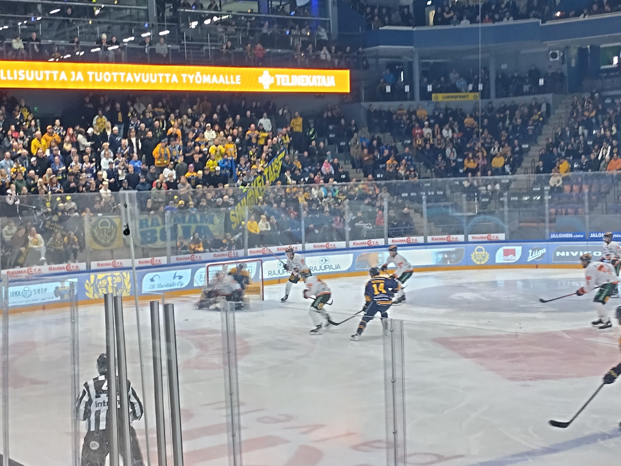 Ensimmäinen erä silkkaa raumalaishallintaa, sillä Lukko vei laukaukset numeroin 24-7. Iso osa kudeista lähti vielä ihan hyvistä paikoista, mutta ei kuitenkaan verkkoon asti.